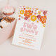 Dois convites de aniversário para o Groovy Retro floral com flores de estilo 70 e fontes e cores boho.