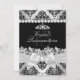 Convite Silver & Black Quinceañera. Design de damasco elegante com arco de seda pérola. Personalize com seus próprios detalhes. Por favor, note: Todas as imagens planas. Eles não têm arcos reais, rendas ou joias!