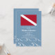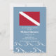 Mergulhe numa celebração divertida honrando um entusiasta do mergulhador com este belo convite. O fundo azul médio tem ondas brancas do oceano e uma bandeira de mergulho sinalizando "mergulhador na água". O cartão é fácil de personalizar com seu texto, fonte, cor da fonte e escolha de seis tipos de papel.