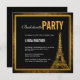 Convite de solteira com uma torre de Eiffel glamourosa a brilhar em ouro falso num lindo fundo preto com aspecto flerta mas elegante. Personalize este convite para ter a festa perfeita para a futura noiva.