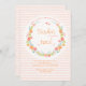 Um convite doce e casual com listras cor-de-rosa e brancas e uma coroa primavera com flores pequenas e coloridas. <a href='http://www.freepik.com/free-vector/mother-s-day-card-with-flowers-and-stripes_853167.htm'>Concebido por Freepik</a>.