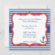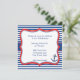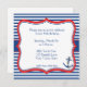 Um convite temático náutico com fundo riscado azul e branco, quadro vermelho e sotaque azul da âncora. Apenas personalize o texto com os detalhes da sua festa. Adequado para qualquer idade ou sexo. Convites vêm com envelopes e sua escolha de papel.