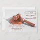 Um convite de cerimônia de suor para um juiz. O cartão apresenta um bonito bloco de som de madeira e gavel aparado em prata. (Pix). <br/>() O cartão é fácil de personalizar com seu texto, fonte, cor da fonte e escolha de seis tipos de papel.<br/>() Não exatamente o que você está procurando? Todos os nossos produtos podem ser personalizados para atender às suas necessidades sem custos adicionais.<br/>() Basta entrar em contato conosco em askcottonlamb@gmail.com<br/>() Coordenando os produtos disponíveis: