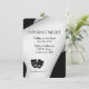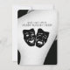 Design de teatro muito elegante num design branco e preto moderno. Esta não é a sua design do dia a dia, mas uma fabulosa design artística perfeita para um evento teatral. Todo o texto pode ser personalizado para dizer o que você quer. Você também pode excluir áreas de texto. A máscara do teatro grego para Comédia e Tragédia está em ambos os lados. Este convite criativo certamente atrairá pessoas e será uma certa conversa durante anos.
