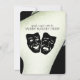 Design de teatro muito elegante num design preto e verde moderno. Esta não é a sua design do dia a dia, mas uma fabulosa design artística perfeita para um evento teatral. Todo o texto pode ser personalizado para dizer o que você quer. Você também pode excluir áreas de texto. A máscara do teatro grego para Comédia e Tragédia está em ambos os lados. Este convite criativo certamente atrairá pessoas e será uma certa conversa durante anos.