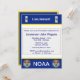 A frente deste convite azul e dourado é decorada com o dispositivo de colarinho do Tenente Júnior e o logotipo da NOAA Commed Corps. O verso é decorado com o logotipo da NOAA Commed Corps. Você pode personalizá-lo para uma promoção ou celebração de aposentadoria.