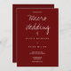 Um convite de casamento para um microcasamento. Este convite foi apresentado em Brides.com "Os 20 melhores convites para microcasamentos que farão uma grande impressão". Este convite é feito em burgundy e white com informações suficientes para ganhar o dia. Simplesmente adicione suas informações, adicione este convite ao seu carrinho e aproveite o seu casamento pequeno e íntimo. Design de Natal do Convite para Tipografia Burgundy | ©Melissa Patton - Designer