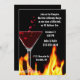 Um maldito copo de martini, colocado sobre um fundo preto, com chamas destaca este convite de festas ao estilo do Gótico. O texto personalizável branco está pronto para personalizar a sua festa de Halloween.