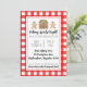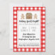Este convite de troca de biscoitos de Natal precioso apresenta uma xadrez vermelha de aquarela com pão de água, moça e casa. A parte traseira apresenta um fundo listrado cor-de-rosa e branco com designs de pão de gengibre de aquarela que correspondem aos suprimentos de festas disponíveis em nosso compro. Diz: "Banho Espíritos Brilhante! Junte-se a nós para um feliz estilo de biscoito de Natal" (ou personalize com um ditado diferente). Adicione todos os detalhes da sua festa.