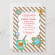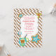 Biscoitos para todos? Nada diz mais sobre as festas de fim de ano do que uma boa e velha troca de biscoitos! Convide sua família e amigos para alguns quitutes com este adorável convite de troca de biscoitos. Ele é colocado sobre um fundo listrado diagonal em marrom claro e branco. Há uma etiqueta branca curva no centro. No canto inferior esquerdo há uma caneca azul com verde de chocolate quente com o rosto de um ursinho na frente. Há marshmallows e um canudo listrado saindo dela. Há um biscoito em forma de estrela com glacê azul ao lado. Use o verso deste convite fofo para explicar como funciona a troca de biscoitos. Confira os muitos outros desenhos que temos.