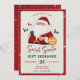 Organize o planejamento da sua festa de Natal com este encantador convite de troca de presentes do Papai Noel Secreto, perfeito para reuniões de escritório, celebrações familiares ou encontros de amigos. Com um design aconchegante e inspirado no vintage, apresentando um Papai Noel alegre e com óculos, segurando um presente e um biscoito, este convite define imediatamente um tom festivo e divertido.