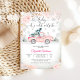 Celebre com estilo com este encantador convite de chá de bebê de inverno, apresentando um caminhão vintage rosa carregando uma árvore de Natal através de uma paisagem invernal nevada. O design em aquarela combina flocos de neve festivos, detalhes florais e letra elegante para um toque sazonal aconchegante. Perfeito para celebrações de inverno, este convite adiciona calor e capricho ao seu dia especial, destacando detalhes importantes com clareza. Uma escolha encantadora para futuros pais que amam temas rústicos, vintage e inspirados nas festas de fim de ano.