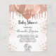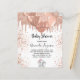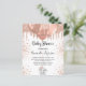 Para um chá de fraldas, comemorando uma menina. Um fundo branco chic. Decorado com rosa dourado, brilho rosado, pintura pingando, balões e uma menina elefante de bebê. Personalize e adicione o nome da futura mãe e os detalhes da festa. O nome e o texto: Chá de fraldas são escritos com um script de estilo manuscrito