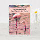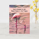 Cartão de convite para uma cabana de praia tropical. O design é um Flamingo Rosa em água rosa.