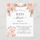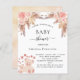 Para um chá de fraldas moderno estilo boho. Um fundo branco. Decorados com ouro rosa e flores cor-de-rosa, rosas, erva-pampas e ursinhas. Personalize e adicione um nome e detalhes da parte.