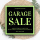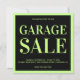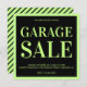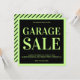 Convide seus amigos e família com este anúncio de venda de garagem moderno com tipografia arrojada e atraente. Basta adicionar os detalhes do seu evento neste modelo fácil de usar para torná-lo um convite de tipo único. Sacudir a placa para revelar um padrão elegante de faixas pretas e verdes claras na parte traseira da placa.