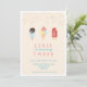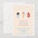 Possui cone de sorvete e aspersores com uma cereja no topo e picolés coloridos. Este convite de aniversário é perfeito para qualquer reunião de férias de verão. Adicione um pedaço de sorvete e alguns borrifos e é um lugar feliz para estar.