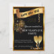 Um elegante convite de festas de Véspera de Ano Novo, com tema preto e ouro, com fogos de artifício de ouro, óculos de champanhe de ouro, uma grande faixa de ouro e galerias de ouro, todos colocados em uma armação de ouro. A parte de trás apresenta um par de óculos de champanhe. Notas do designer: tudo pode ser personalizado, incluindo a redação na faixa, o ano e, claro, os detalhes do partido de hora e data, e informações de RSVP. O ano de 2018 pode ser completamente suprimido, se assim o desejar, para utilizar este convite em qualquer ocasião, incluindo aniversários, etc. Também pode ser feito em cores diferentes - entre em contato comigo no link abaixo com o seu pedido.