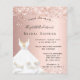 Um convite moderno, na moda e glamouroso para um Chá de panela. Um fundo rosa dourado, gradiente de cinza com brilho sujo, faíscas e um vestido branco. O nome é escrito com um moderno estilo escrito à mão. Personalize e adicione os detalhes da sua festa.