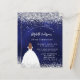 Um convite moderno, na moda e glamouroso para uma festa de aniversário 18 (ou qualquer idade). Um fundo azul marinho com brilho sujo, brilhos, uma garota vestindo um vestido de bola. A cor azul é irregular. O nome é escrito com um moderno estilo escrito à mão. Personalize e adicione os detalhes da sua festa.
