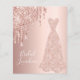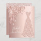 Um elegante, clássico, glamouroso e giro almoço de noiva, convite ao chá. Um vestido de ouro de rosa com um pingado de ouro falso rosa. Rosa dourado falso fundo metálico. Com o texto: Bridal Luncheon na frente escrito com um moderno roteiro de estilo escrito à mão, branco e escrito. Adicione os detalhes do evento no verso.