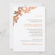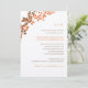Este belo convite de casamento impresso apresenta um belo design de videira na parte superior esquerda em bronze e laranja
