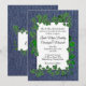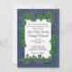 Um convite encantador de denim com um vinho sobrecarregado. Coloque os primeiros nomes do casal de um lado com toda a informação do casamento e saudação no reverso. Por favor, verifique triplicamente todo o seu texto.