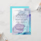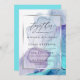 Convite para Casamento com Tinta Álcool - Espalho eletrizante de tinta alcoólica em tons de azul aqua brilhante e roxo violeta profundo - destacado com uma camada de prata de ouro branco puro, enquadrada, para um apelo esotérico, um belo design abstrato moderno. A caligrafia manuscrita mostra a palavra "juntos" no topo acima dos detalhes do casamento - esta é uma modelo de casamento muito fácil de personalizar.