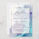 Convite para Casamento com Tinta Álcool - Espalho eletrizante e fluente de tinta alcoólica em tons de azul aqua brilhante e roxo violeta profundo - destacado com uma camada de ouro branco puro, enquadrada, para um apelo esotérico, um belo design abstrato moderno. A caligrafia manuscrita mostra a palavra "juntos" no topo acima dos detalhes do casamento - esta é uma modelo de casamento muito fácil de personalizar.