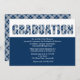Uma xadrez acadêmica em azul e branco escreve a palavra "graduação". O fundo azul e branco sólido tem um aspecto limpo e agudo perfeito para uma celebração de formatura. Adequado para qualquer grau ou sexo. br/>O convite é fácil de personalizar com seu texto, fonte, cor da fonte e escolha de seis tipos de papel.