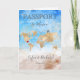 Convite moderno e elegante com um mapa mundial de destino de casamento no México, como passaporte