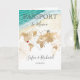 Convite moderno e elegante com um mapa mundial de destino de casamento no México, como passaporte