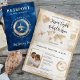 Passaporte Casamento Cruise Coastal Island Vintage Invitation Este convite contém um selo de ouro vintage angustiado com um motivo de avião, colocado contra um rico fundo azul-marinho — ideal para um casamento de viagem ou destino.