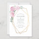 O estilo pastel chico pincelou o convite de casamento floral cor-de-rosa, roxo e horta com estrutura geométrica dourada.