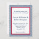 Este convite de casamento tem uma beira clássica da listra da viga em azul e em branco. O texto azul é encerrado em uma beira vermelha. Este é convite igualmente trabalharia para um 4o do casamento de julho. Personalize e personalize o texto em ambos os lados antes de pedir.