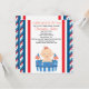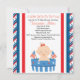 Foguetes & fogos-de-artifício! Há um bebê na maneira!! Comece sua celebração fora com este convite adorável do chá de fraldas. Tem a beira da bandeira dos Estados Unidos vermelha, a branca, e a azul abaixo de cada lado com o branco do centro. No centro inferior é um bebé bonito em um tambor azul e branco com um arco vermelho em seu cabelo e em guardarar a bandeira americana em cada mão. Personalize com sua informação do partido. Verifique para fora o outro design e cores que nós oferecemos. ilustrações do ©JW