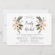 O convite do Bat Mitzvah floral Chic apresenta o nome da sua filha em um roteiro elegante de caligrafia, enquadrado por pêssego e flores cor-de-rosa, botões e verde. Personalize com seus detalhes de eventos abaixo, incluindo espaço para cerimônia religiosa e celebração ou festa.