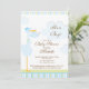Comece seu chá de fraldas do bebé fora do direito com nosso convite bonito do chá de fraldas da cegonha. O convite caracteriza uma cegonha adorável que guardara um pacote azul do bebé de grupo da alegria em um fundo branco torrado com nuvens e uma beira da listra azul. A parte traseira do convite do chá de fraldas do menino caracteriza a harmonização do fundo azul & verde moderno & à moda da listra. Visite nossa loja para uma grande seleção do convite do chá de fraldas para meninos. design do ©Blackleaf