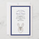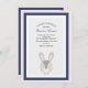 Um convite chique, caracterizando um coelho, dobra moldado nos azuis marinhos e no creme. Bem-serido para chás de fraldas, festas de aniversário, celebrações da páscoa e mais. (<a href='http://www.freepik.com/free-vector/cute-rabbit-inside-a-black-frame_972434.htm'>Projetado por Freepik</a>). <br/><br/>O cartão é fácil de personalizar com seus fraseio, pia batismal, cor da pia batismal e escolha de seis tipos de papel<br/><br/>Não exatamente que você está procurando? Todos nossos produtos podem ser projetados para encontrar suas necessidades em nenhuma sobretaxa<br/><br/>Contacte-nos simplesmente em askcottonlamb@gmail.com<br/><br/>Produtos de coordenação disponíveis: