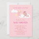 Convite do chá de fraldas que caracteriza o design do anjo do bebé.
