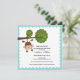 Comece seu evento fora do direito com nosso convite bonito do chá de fraldas do macaco que caracteriza um macaco doce do rapaz pequeno que pendura de um grupo da árvore em um fundo azul scalloped. Convite na moda do chá de fraldas do macaco perfeito para um chá de fraldas do bebé! Apenas personalize com sua informação e você é todo ajusta-se para ir! Artigos de harmonização que incluem o porte postal do chá de fraldas, etiquetas do favor, obrigado carda-o & agradecem-n que a as etiquetas estão igualmente disponíveis em nossa loja.