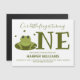Nosso sapo está fazendo um primeiro convite de aniversário para bebês. Este convite é verde e branco com a palavra "Um" em letras grandes, com um sapo sobre uma ilustração límpida como primeira letra da palavra. Simplesmente, personalize este convite, adicione-o ao seu carrinho e feliz aniversário ao seu maravilhoso bebê! Pequeno Sapo Transformando Um Animal Grito Primeiro Aniversário Design de Natal | ©Melissa Patton — Artista/Ilustrator