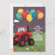 Convite Personalizado de festa de aniversário. Convites e artigos de papelaria Convite de aniversário com um grande trator vermelho e balões. Coloque o nome dos seus filhos no cartão com todos os detalhes para que os amigos dele festejem.
