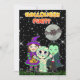 Convite de festa de Halloween com vampiro, múmia e bruxa desenhados à mão fofos.