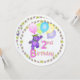 segundo aniversário convite de festas com nome personalizado apresentando uma princesa de ursinho roxo e fofinho vestida com uma adorável coroa amarela e acessórios de flores rosa, azuis e verdes segurando um monte de balões com a palavra FESTA neles. Personalizar com o nome da criança o torna especial. design original de Anura Design Studio.
