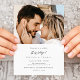 Celebre sua história de amor com este convite de casamento de fotos elegantes moderno. Apresentando um layout de foto de cheio emparelhado com a tipografia do na moda, este modelo personalizável foi projetado para casais que apreciam eternos e papelaria de casamento. Personalize com seus nomes, detalhes de casamento e informações de RSVP para criar uma manutenção única que reflita perfeitamente seu dia especial. Ideal para casamentos modernos, minimalistas e sofisticados.