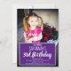 Convite de aniversário Personalizado de Foto com Cores Roxas. Basta adicionar sua própria foto personalizada a este modelo e mudar o texto para personalizá-lo para seu filho.