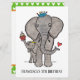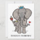 Uma doce ilustração de um elefante e bebê. O bebê está segurando um cupcake coberto de aspersores e ambos estão vestindo coroas.