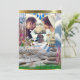 Esses belos cartões de "salve a data" à beira da praia são a maneira perfeita de anunciar o seu casamento próximo. Os cartões apresentam uma foto personalizada da noiva e do noivo emoldurada em uma fina linha de ouro. A foto é colocada contra um fundo de flores roxas e madeira flutuante, e a data do evento é impressa abaixo da foto. Os nomes do noivo e da noiva também são impressos no cartão.