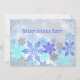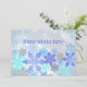 Convite para Festas de Feriado com flocos de neve em azul com detalhes de texto personalizáveis em uma cinza de luz sólida. Todo texto totalmente personalizável.